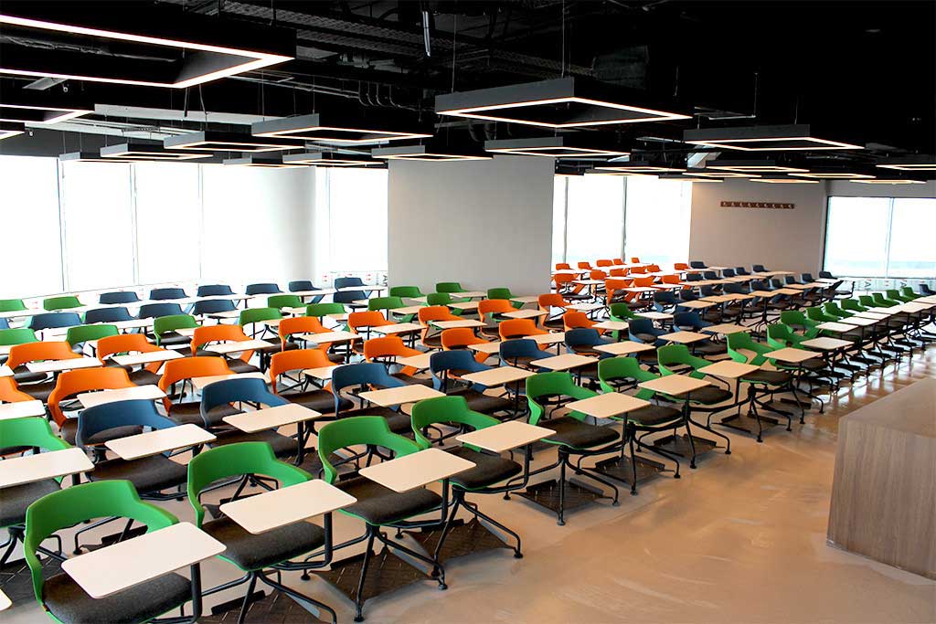 Inside the university, you can exercise at the gym, play music in the music room, and enjoy watching movies at the cinema.